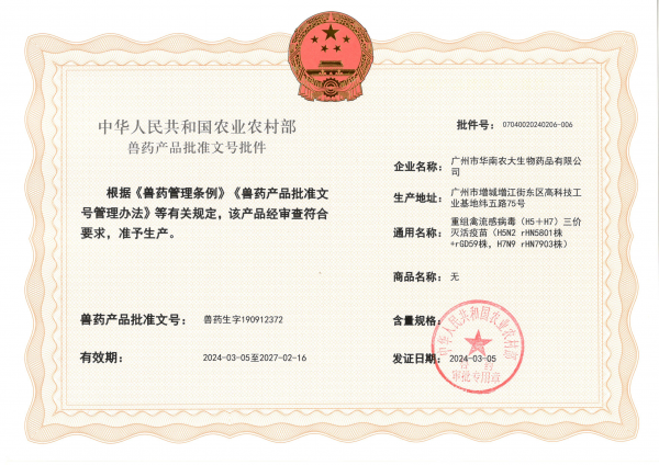 獸藥生產(chǎn)許可證:(2022)獸藥生產(chǎn)證字19091字