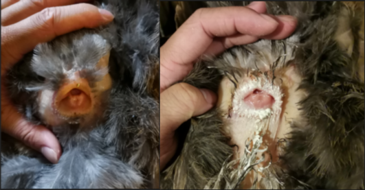 IBV病毒感染侵害生殖系統導致發育不良甚至不發育,臨床表現為無法翻肛,產蛋少或是不產蛋;侵害泌尿系統導致腎臟對尿酸鹽排泄不暢,臨床表現為排白色尿酸鹽糞便。
